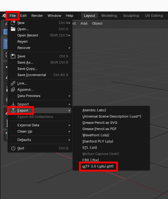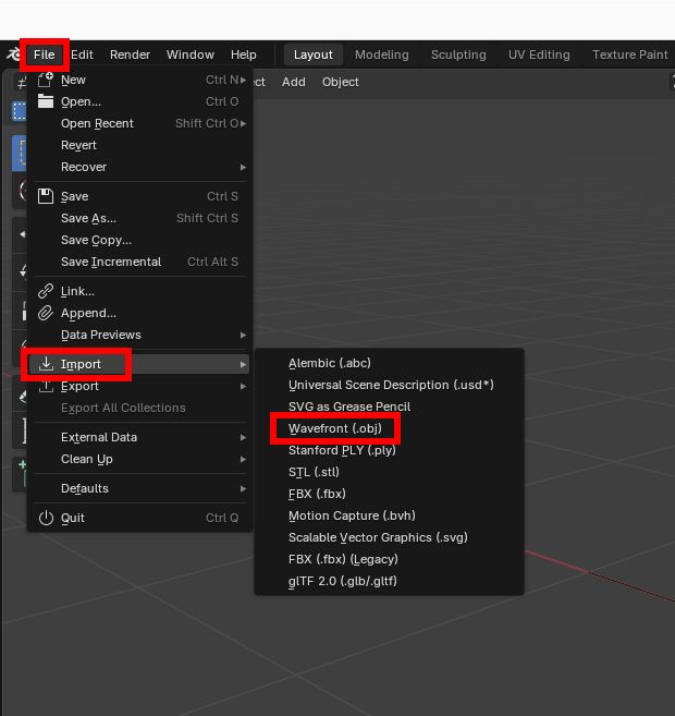 We'll be using blender for this step. Blender accepts most of major 3d model formats except some proprietary ones. You don't have to use blender, but the naming convention, model tree, output file format must be matched.