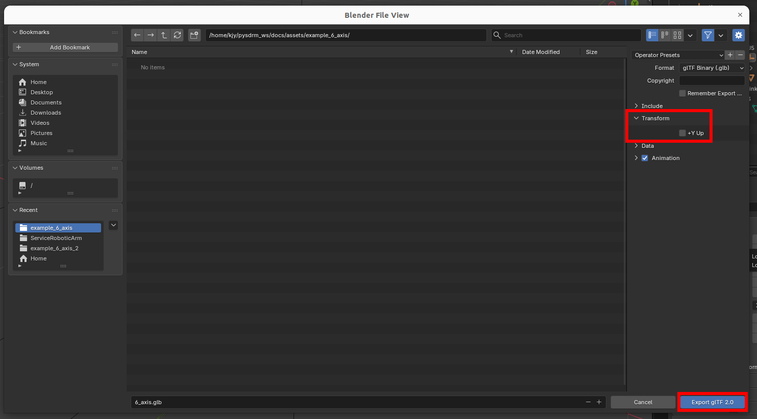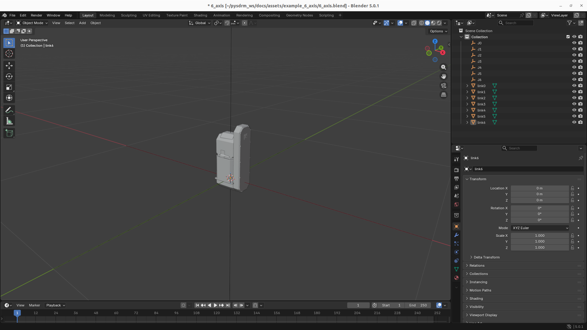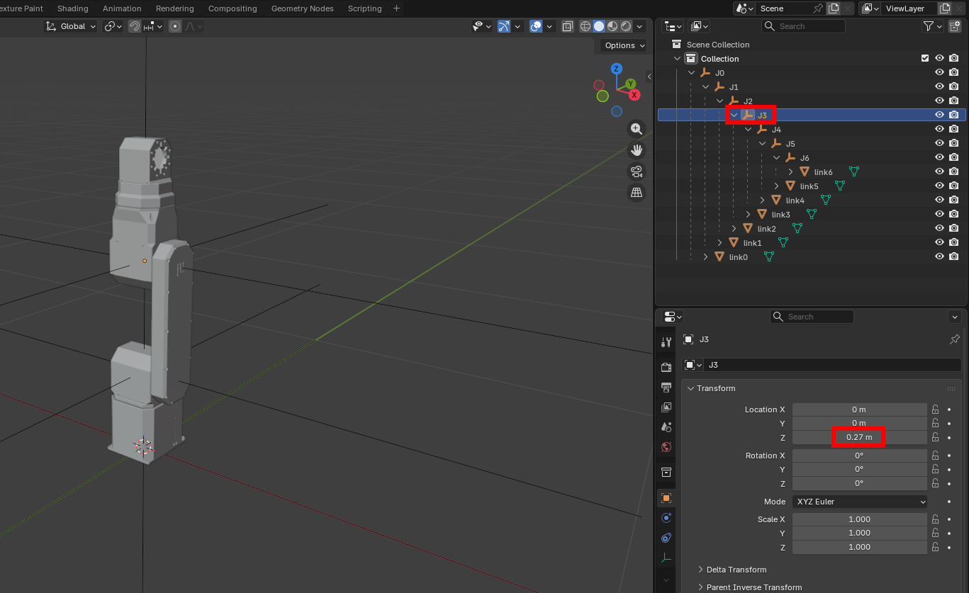 The joint structure set in Blender must match the DH parameters in Stellar Designer.