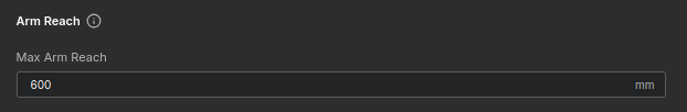 We need to define the total reach of the robot. For this example, the total length from the base to the Tool Center Point (TCP) corresponds to 600 mm.