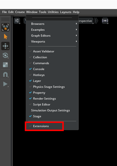 2. Click the 'Window' tab and select the 'Extensions' menu.