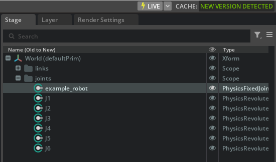 - Open up all the joint prims and you'll see the full stage tree. Right-click on the empty part of the stage and click