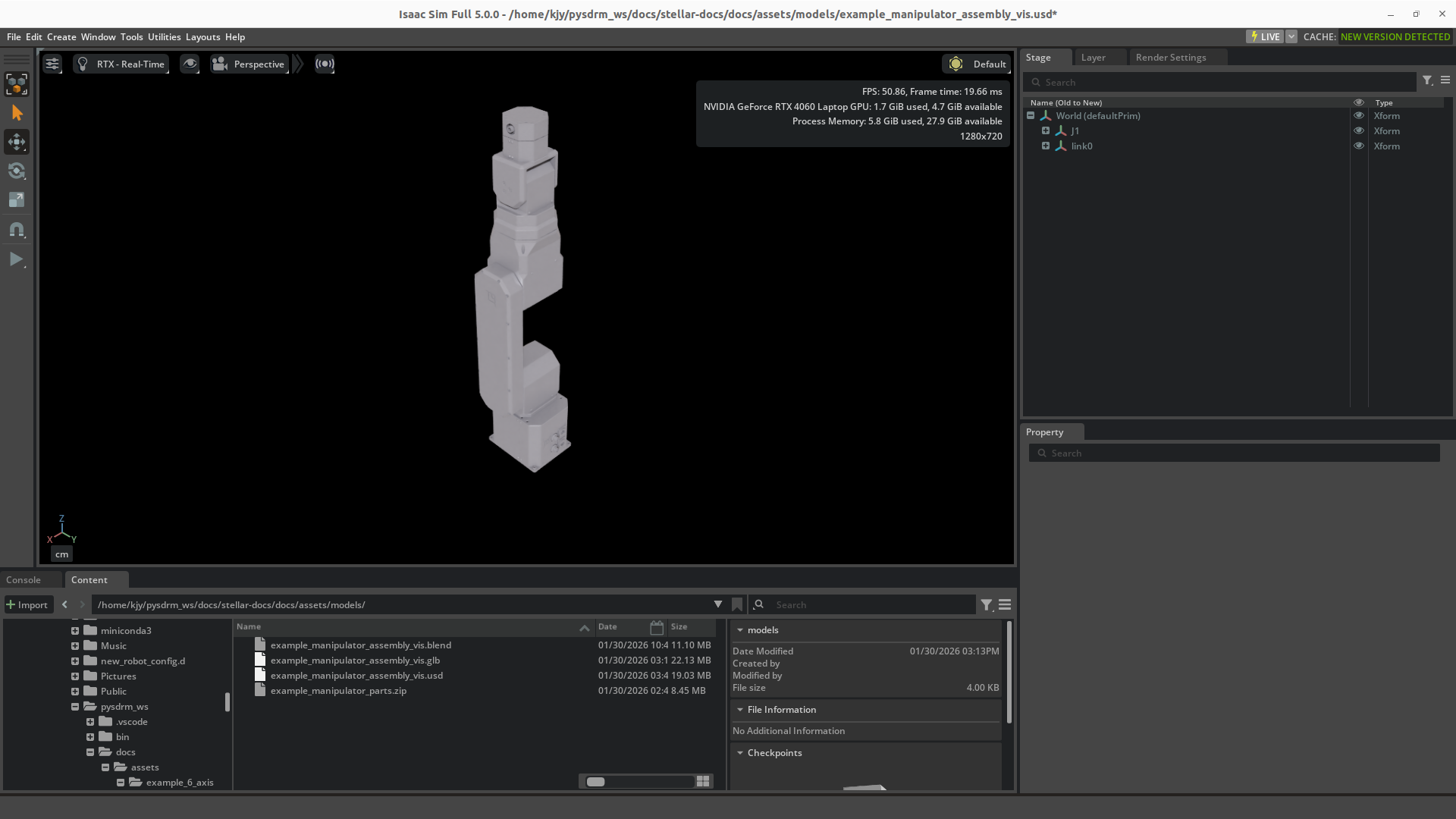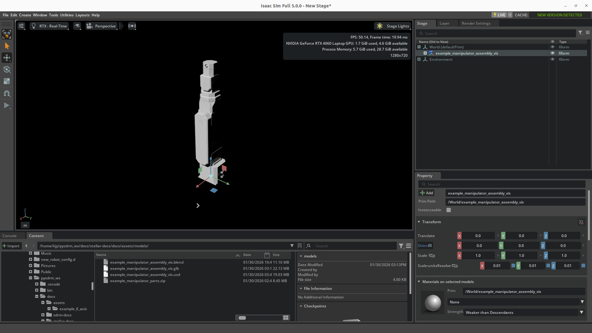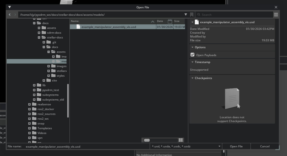 .usdformat file with the same name. ClickFile->Openand open the.usdfile. You'll be then able to see the full robot model.