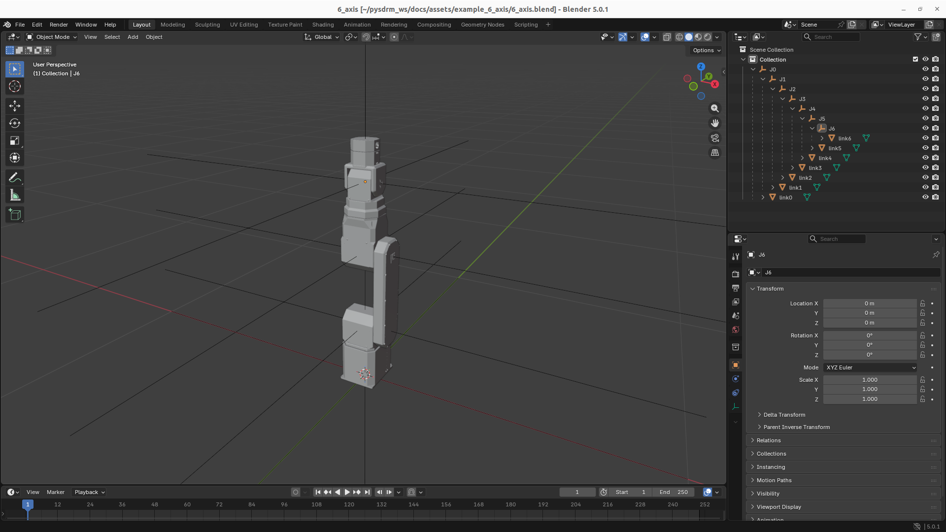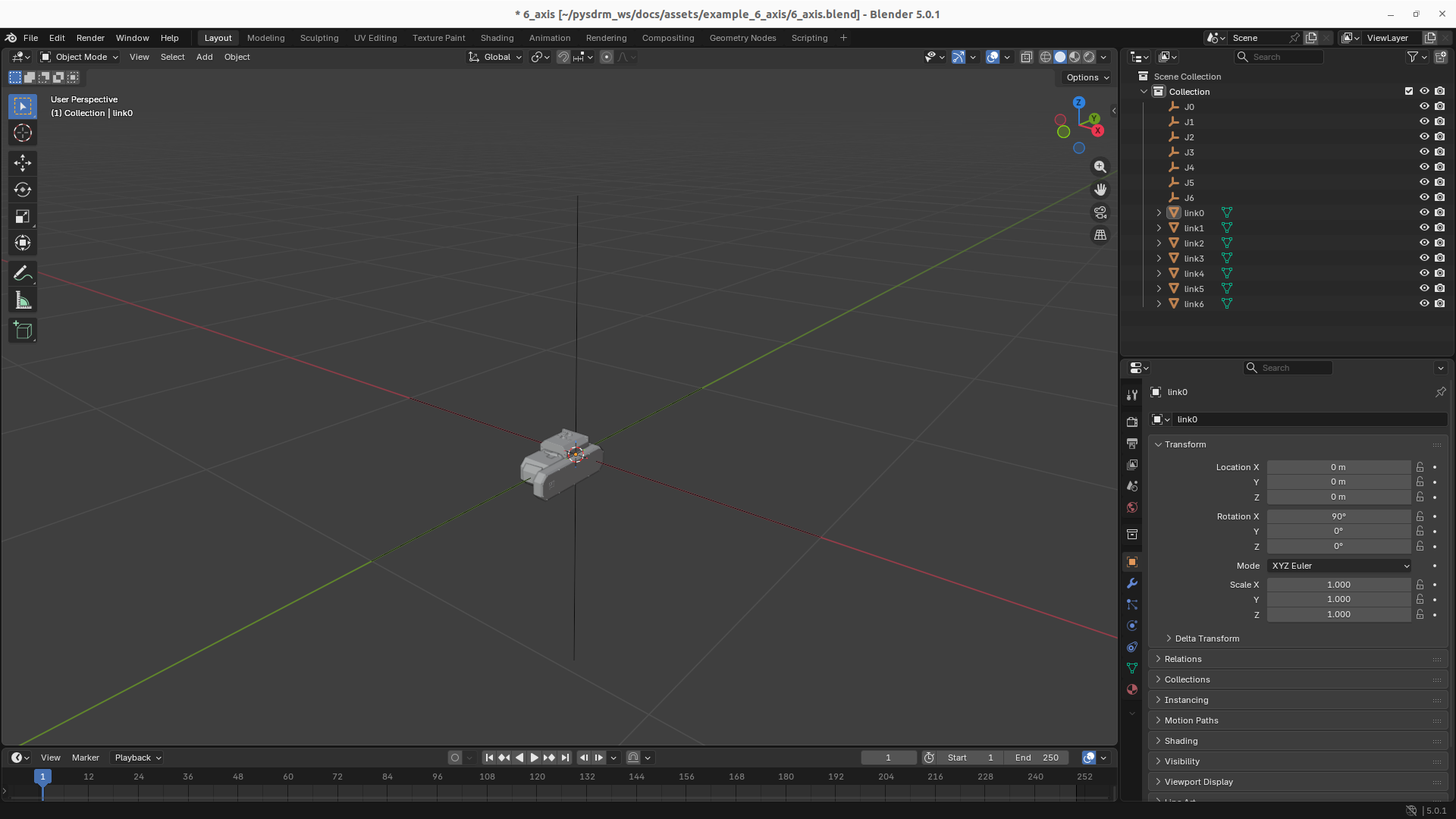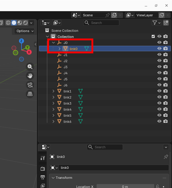 link0and shift-drag the link to theJ0joint.link0should now lay underJ0. Repeat it for all the other links.