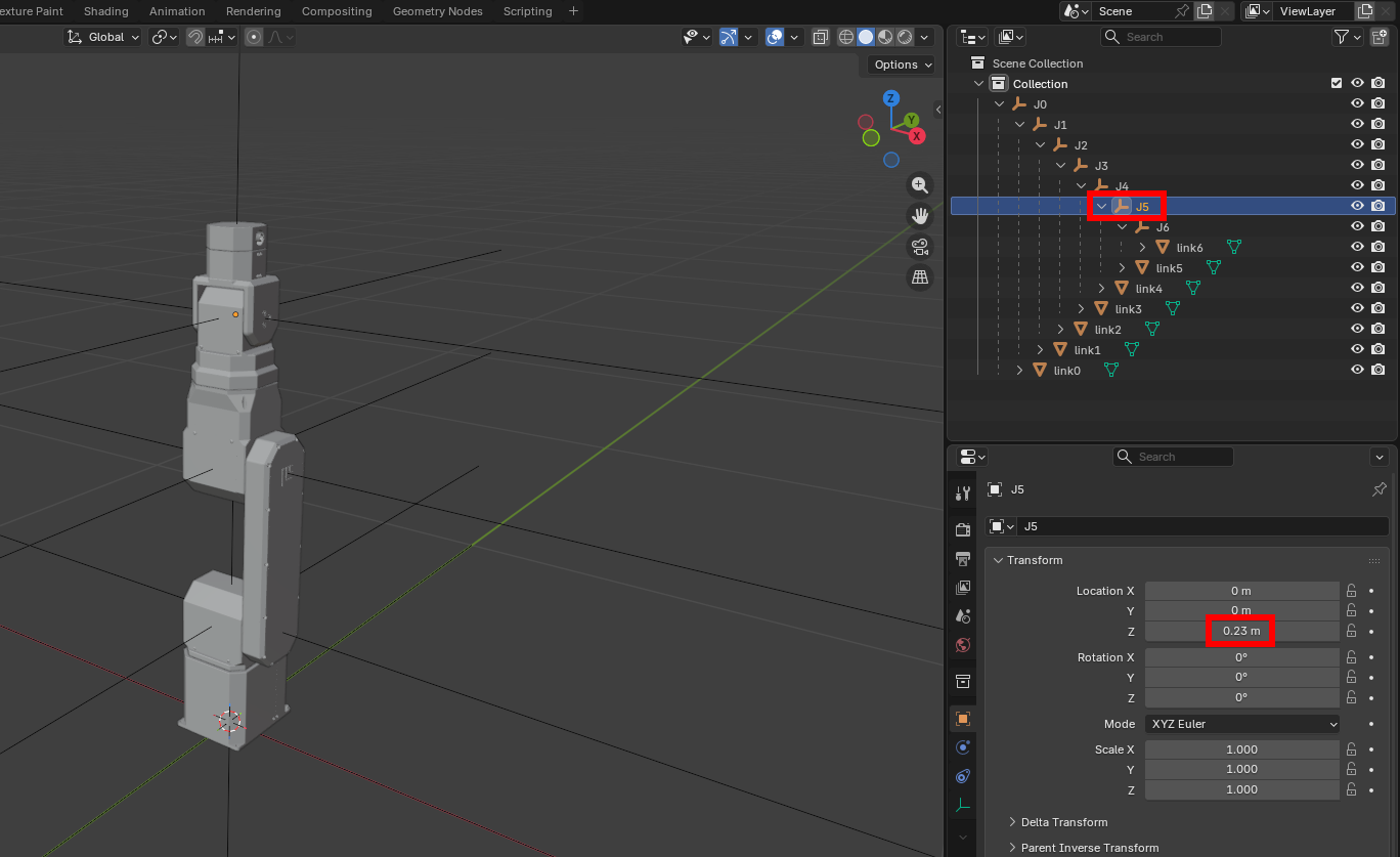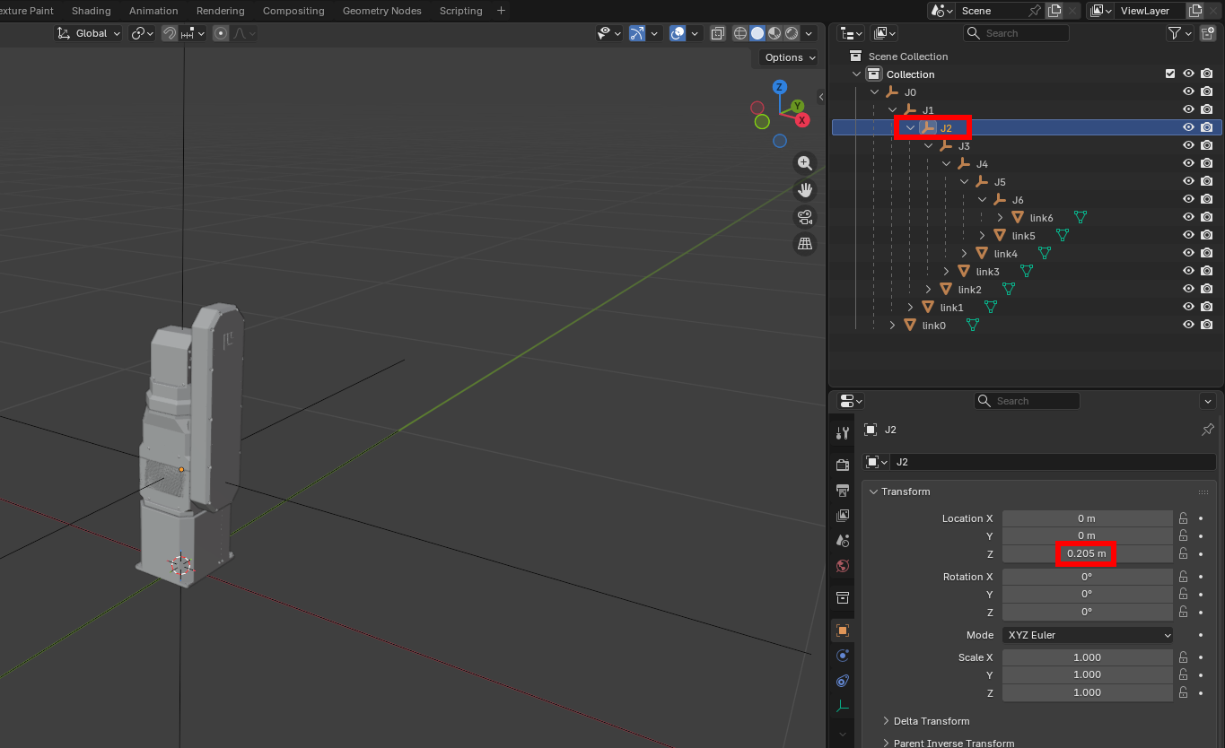 2. Matching modeling and DH parameters in Blender