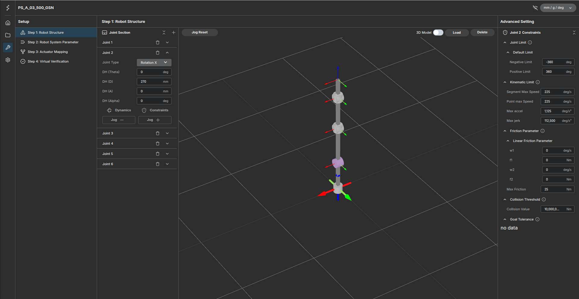 - Set the rotation axis of each joint (