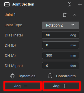 Use the Jog tab to ensure the joints rotate correctly.
