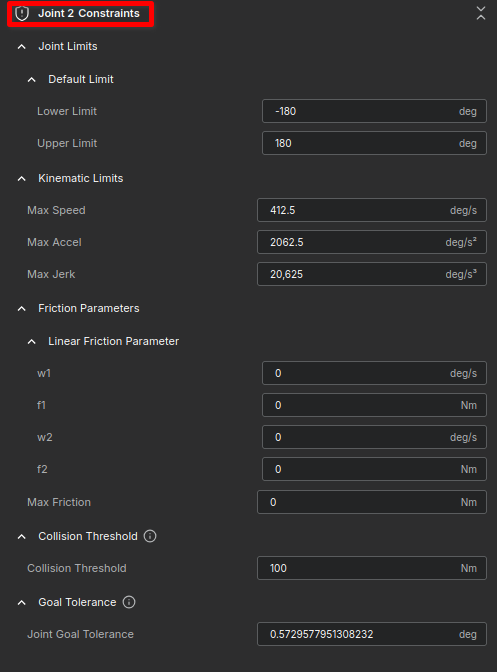 Constraints Settings for Joint 2