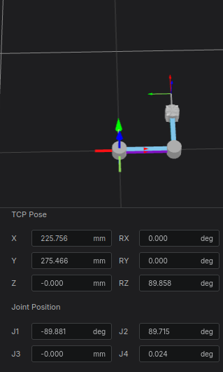 - Test Move (Linear): The robot interpolates movement in the Task Space, moving the TCP in a straight line from the current position to the target.